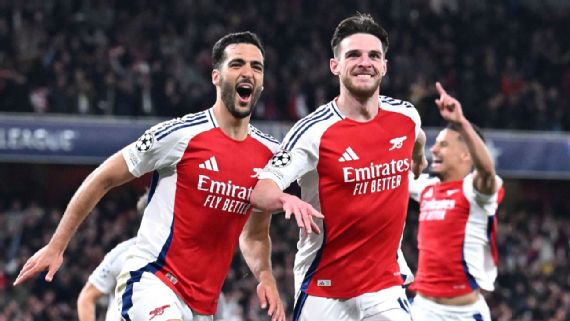 Arsenal defeats Real Madrid 3-0 in the first leg of Champions quarterfinals.